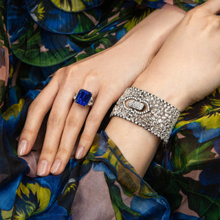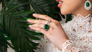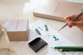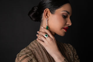 Inspired by Ruchi's love for emeralds and the bold, geometric design of the Art Deco period.