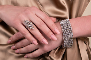 This exquisite statement bracelet reimagines luxury with a modern twist, featuring an innovative honeycomb-style setting adorned with rare hexagonal-cut diamonds. Inspired by the delicate yet strong structure of a beehive, the design achieves both brilliance and fluidity, allowing the bracelet to move effortlessly, almost like fabric. Masterful craftsmanship and contemporary elegance come together to create this exceptional piece—an iconic red-carpet classic designed to captivate.
