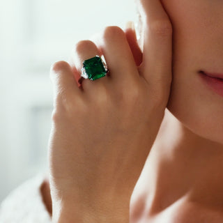 This ring features a meticulously selected Colombian emerald, chosen for its exceptional color and clarity. Flanked by brilliant shield-cut diamonds, the design enhances the emerald’s natural radiance while maintaining a balanced, regal presence. Handcrafted in New York, it reflects Ruchi’s five generations of expertise in gemstone sourcing and cutting and is accompanied by certification.