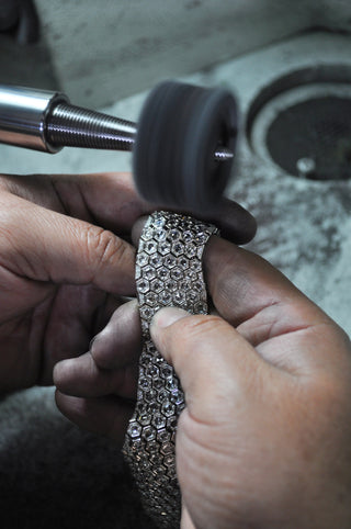 Intricate linking ensures silk-like movement, while ancient diamond cuts—such as hexagons and rose cuts—add a timeless elegance. From feather-light statement earrings to perfectly balanced necklaces, each piece is a testament to meticulous artistry and innovative design. Learn more.