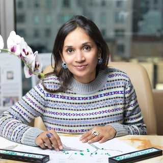 Ruchi's creative spirit is fueled by her innate curiosity and love of travel and nature. Rather than adhering to a singular style, the designer plays with colorful gems and diamonds in a painterly way, creating a range of styles and themes as diverse as her clientele.